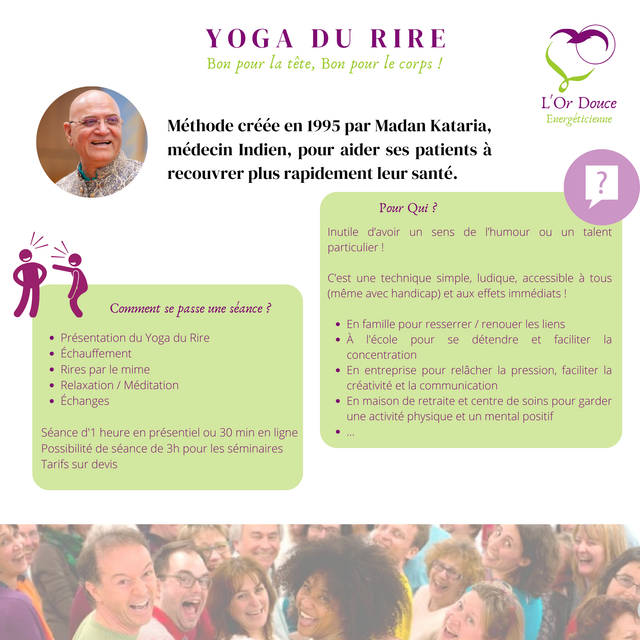 Déroulement : échauffement, exercices de rire, relaxation/méditation